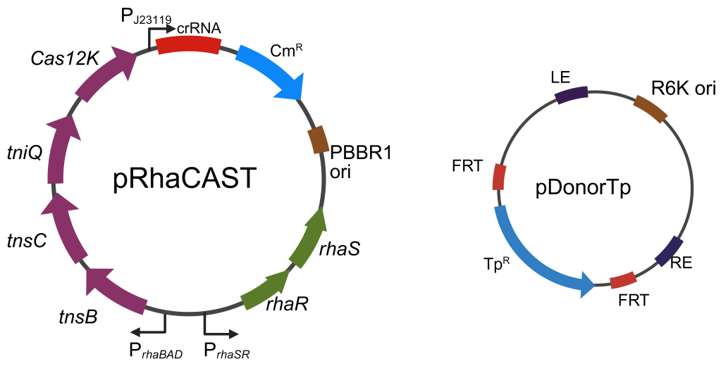 Genome editing in non-model bacteria is important to understand gene-to-function links that may differ from those of model microorganisms. To broaden the genetic tools available for Bcc species, we developed RhaCAST, a targeted DNA insertion platform based on a CRISPR-associated transposase driven by a rhamnose-inducible promoter. Read about this system in Yap et al., 2024 Applied and Environmental Microbiology.